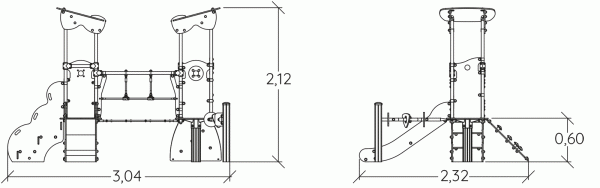 Модулна площадка за ранна детска възраст, предназначена за деца от 2 години нагоре. Включва пързалка, панел за игра и безопасни стъпала, които насърчават двигателното развитие и социализацията.