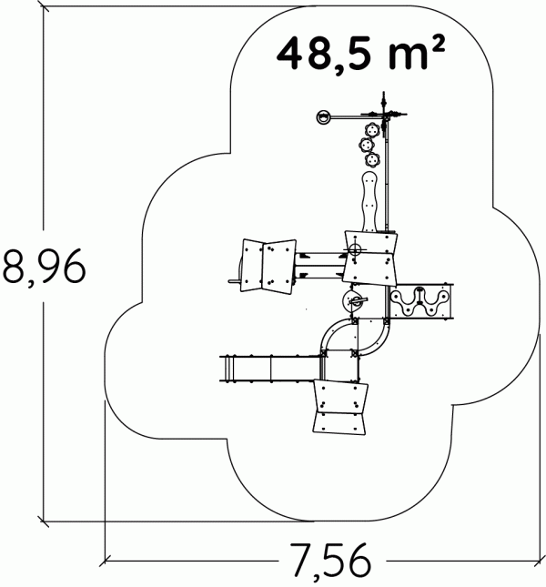 Модулна игрална площадка, вдъхновена от приключенския дух, подходяща за деца от 2 до 6 години. Предлага разнообразие от катерачни и балансни елементи, които насърчават физическата активност и социализацията.