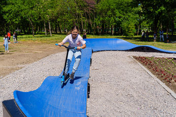 С помощта на чудесната компания Мебели Виденов през 2021 г. доставихме и инсталирахме ПЪМПТРАК писта. В Ямбол вече има пъмптрак писта – модерно и безопасно място за спорт и забавление за деца и младежи.